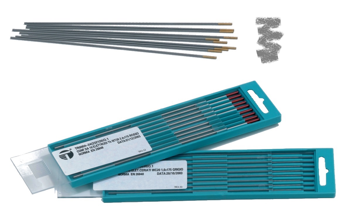 - 1 elettrodo in tungsteno grigio da 2,4 lungo 175 mm.
