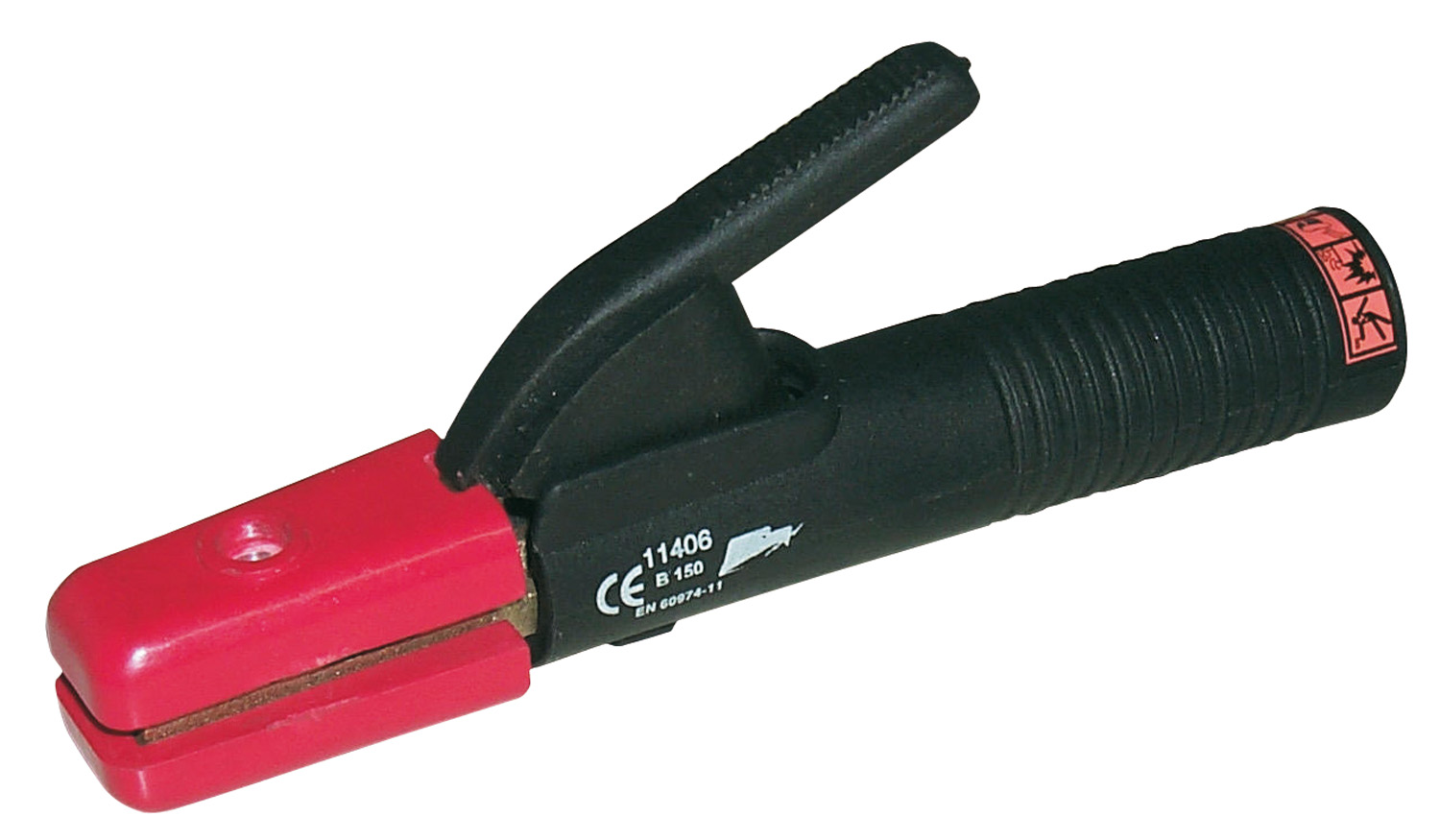 Serraggio dell'elettrodo a leva. Corpo pinza in ottone pressofuso, rivestimento antiurto, serraggio cavo tramite brugola.Fissaggio elettrodo in 7 posizioni.