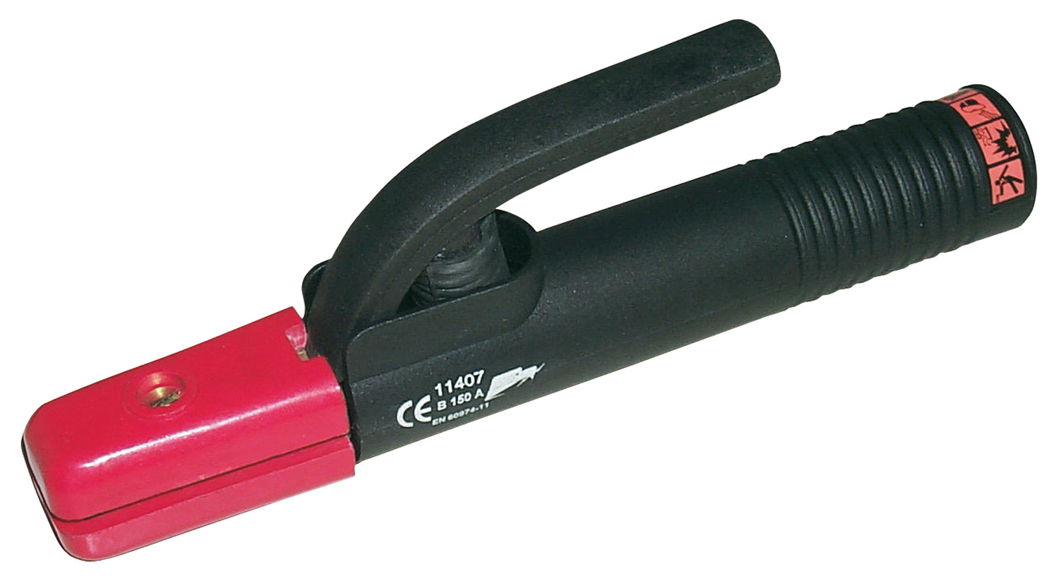 Serraggio dell'elettrodo a leva. Corpo pinza in ottone pressofuso, rivestimento antiurto, serraggio cavo tramite brugola.Fissaggio elettrodo in 7 posizioni.