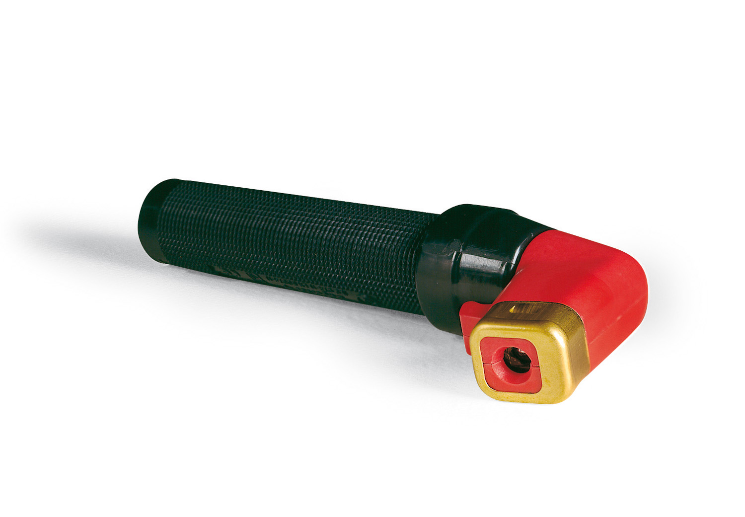 Pinza porta elettrodo che consente il serraggio degli elettrodi in un'unica posizione mediante rotazione dell'impugnatura.