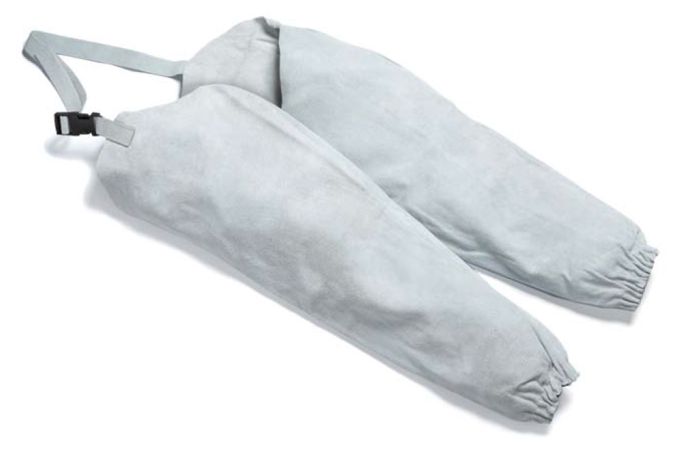 Manica in pelle crosta bovina. Chiusura del polsino con elastico e avambraccio con lacci.