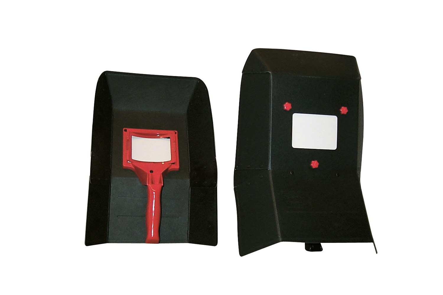 Schermo in fibra curvo, l'impugnatura fa corpo unico con il telaio porta lastrine rendendo lo schermo molto solido, fornito smontato.