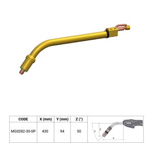 La torcia ERGOPLUS 500 SPECIAL ha montato il corpo torcia prolungato cod. MG0282-30-SP, con lunghezza +300mm rispetto allo standard cod. MG0286.