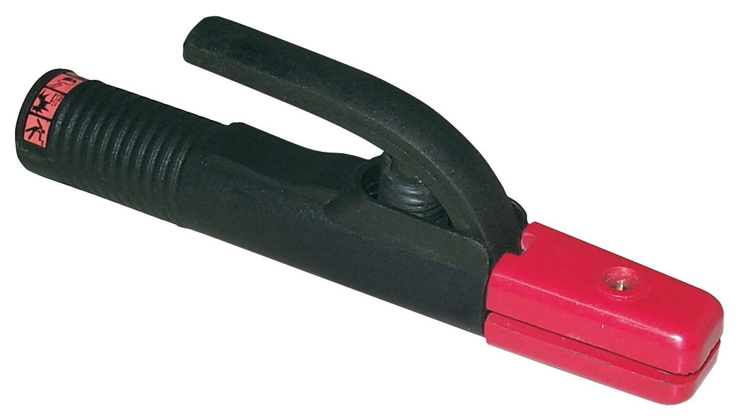 Serraggio dell'elettrodo a leva. Corpo pinza in ottone pressofuso, rivestimento antiurto, serraggio cavo tramite brugola. Fissaggio elettrodo in 7 posizioni.