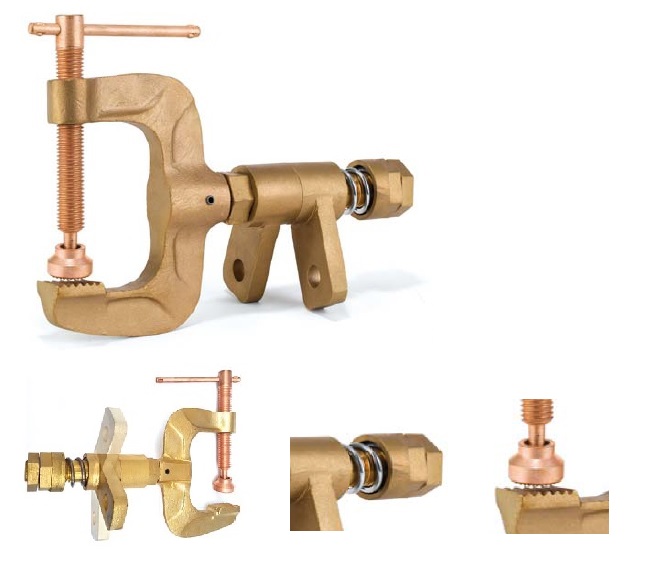 Morsetto massa rotante in ottone pressofuso, vite di fissaggio in acciaio ramato con contatto basculante, per alti amperaggi.