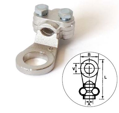 Capocorda per serraggio cavo con 2 viti a testa esagonale.