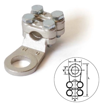Capocorda per serraggio cavo con 4 viti a testa esagonale.