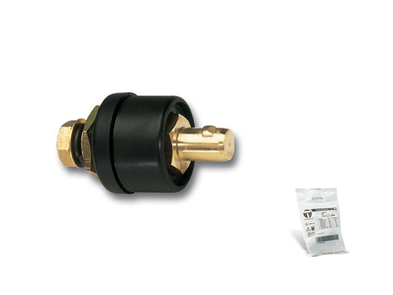 Spina pannello per connessione rapida di pinze/morsetti alla macchina saldatrice, corpo in ottone con ghiera esterna in materiale termoindurente, ignifugo e anticalore.