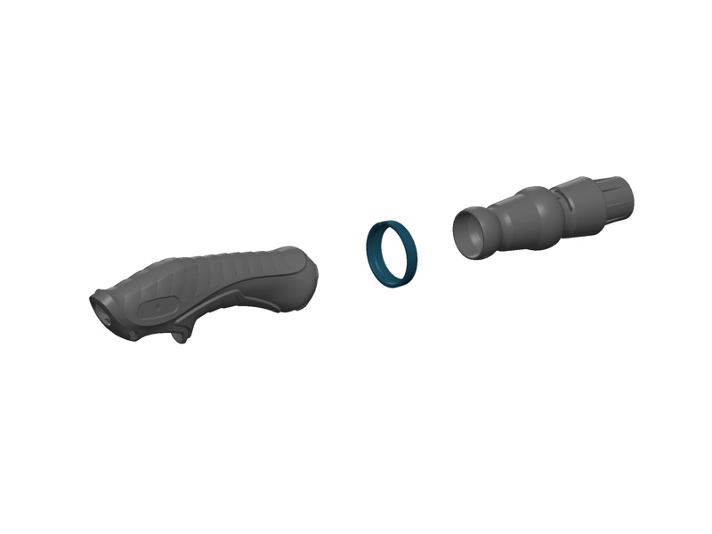 Kit impugnatura composto da: impugnatura in plastica e gomma, ghiera in nylon, snodo, viteria.