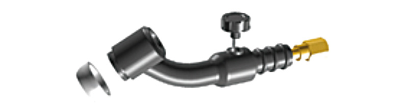 Impugnatura a tubo, disponibile anche con corpo toricia flex, con valvola e con valvola flex. Cavo potenziale coassiale con connettore da 25mm e 2000mm di tubo gas.