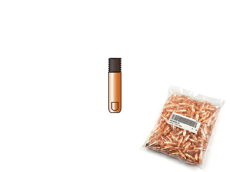 Punte per la saldatura MIG, con il rivoluzionario foro triangolare brevetto Trafimet (patent pending) che permette il contatto contemporaneo in due punti tra il filo e la punta, migliorando il rendimento, la durata, e riducendo i rischi d'incollaggio.