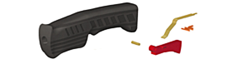 Kit impugnatura composto da: impugnatura nera, pulsante, molla e viteria.