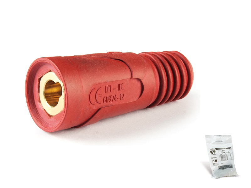 Connettore presa per giunzione cavi di saldatura, corpo in ottone, rivestimento isolante in materiale elastomerizzato resistente al calore e all'umidita con resistenza di isolamento superiore a 2MOhm, RED.