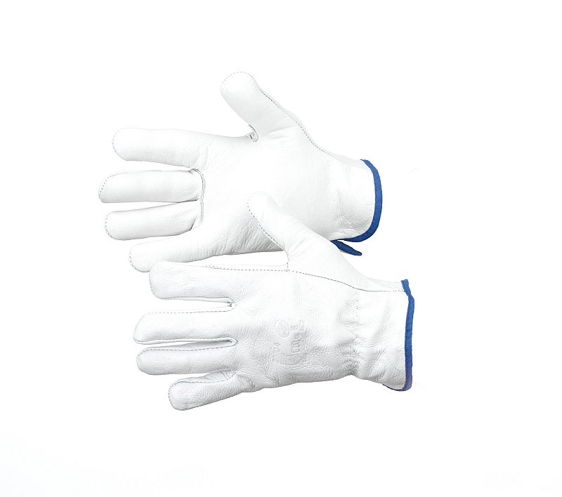 Guanto a 5 dita in pelle fiore bovino di prima qualità, bordato. Il pollice aperto consente una maggiore flessibilità, e rende il guanto più duraturo e confortevole.