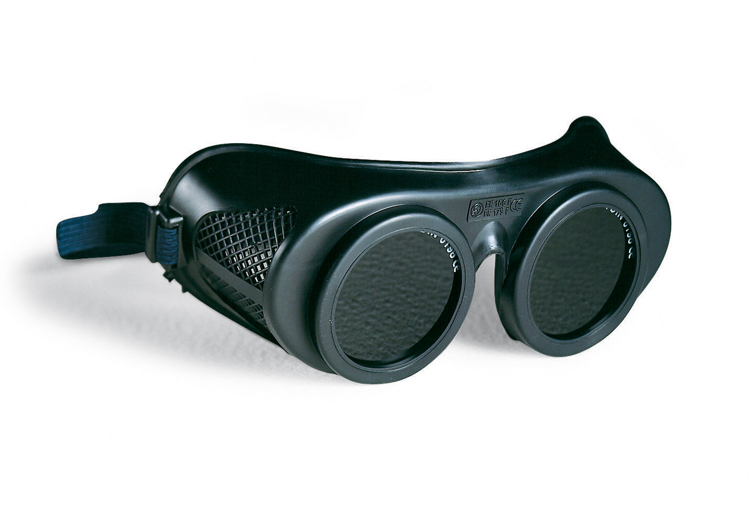 Mascherina in materiale plastico morbido con elastico regolabile. Protezione saldatura lenti verdi DIN 5.