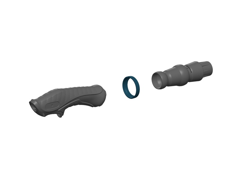 Kit impugnatura composto da: impugnatura in plastica e gomma, ghiera in nylon, snodo, viteria.