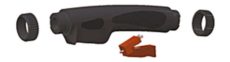 Kit impugnatura composto da: impugnatura nera, pulsante, ghiera in nylon.